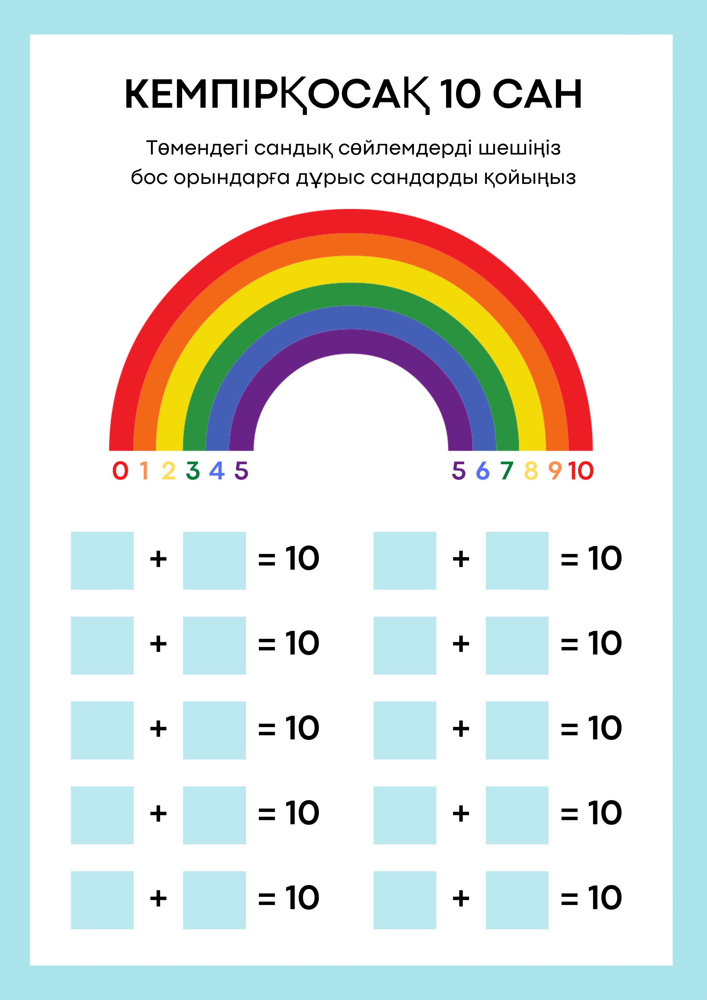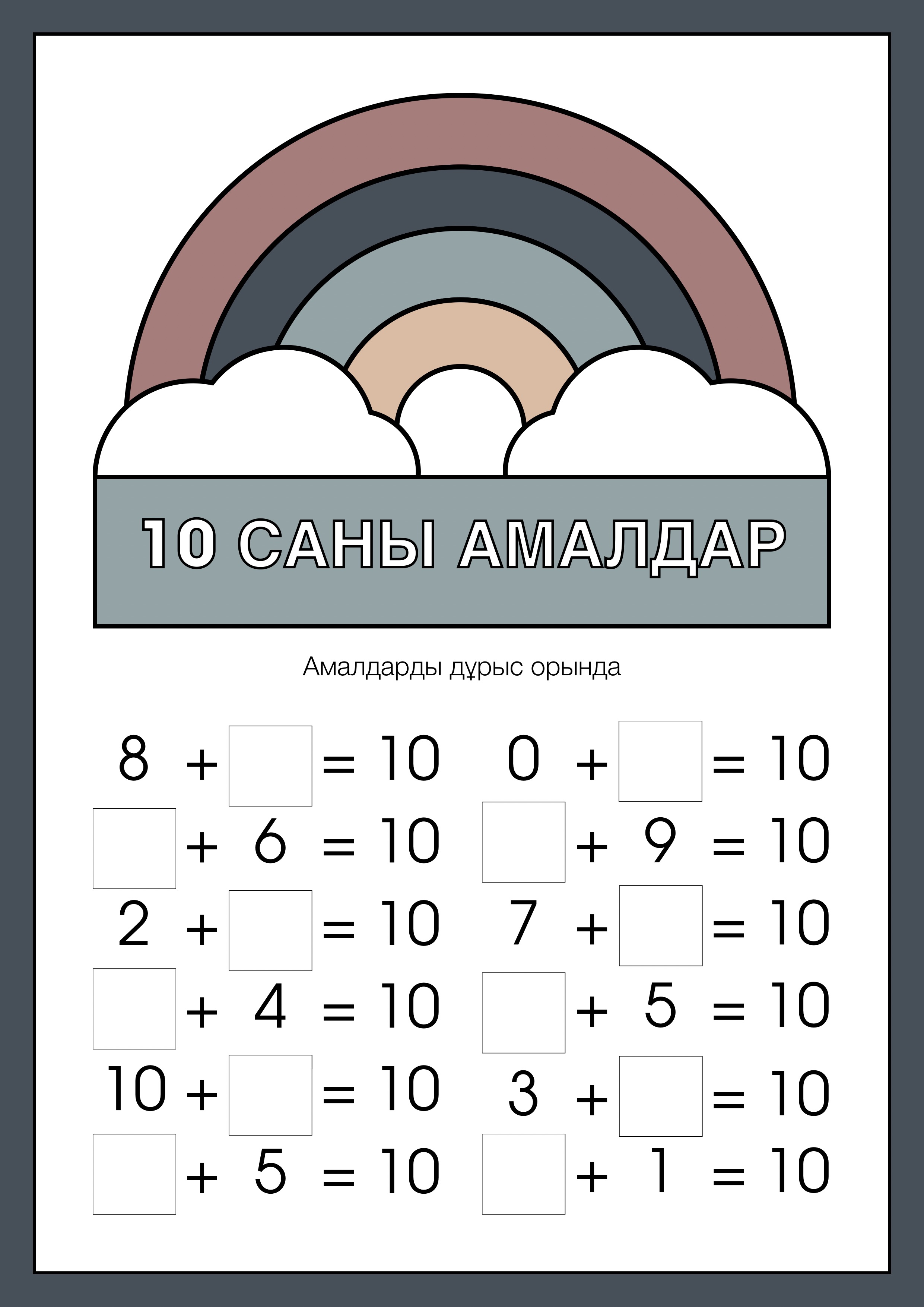 • Кемпірқосақ тақырыбы бойынша 10 санына амалдар – визуалды, қызықты тапсырмалар ;
