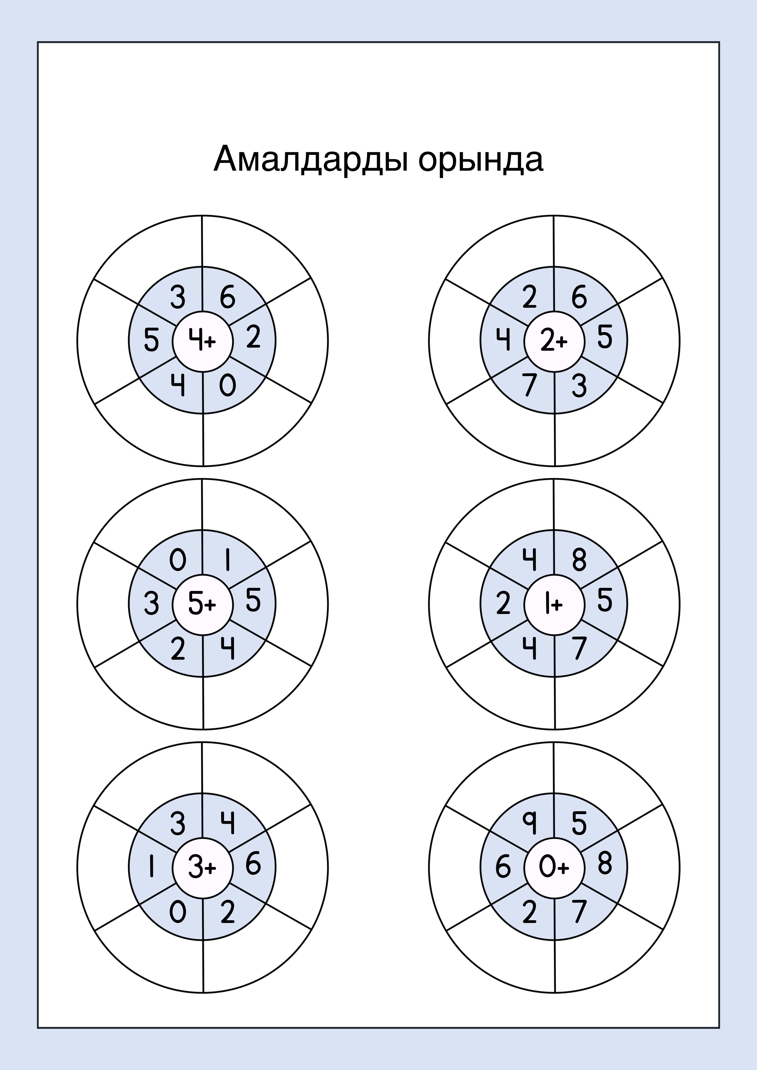• 1–10 сандары бойынша амалдар: