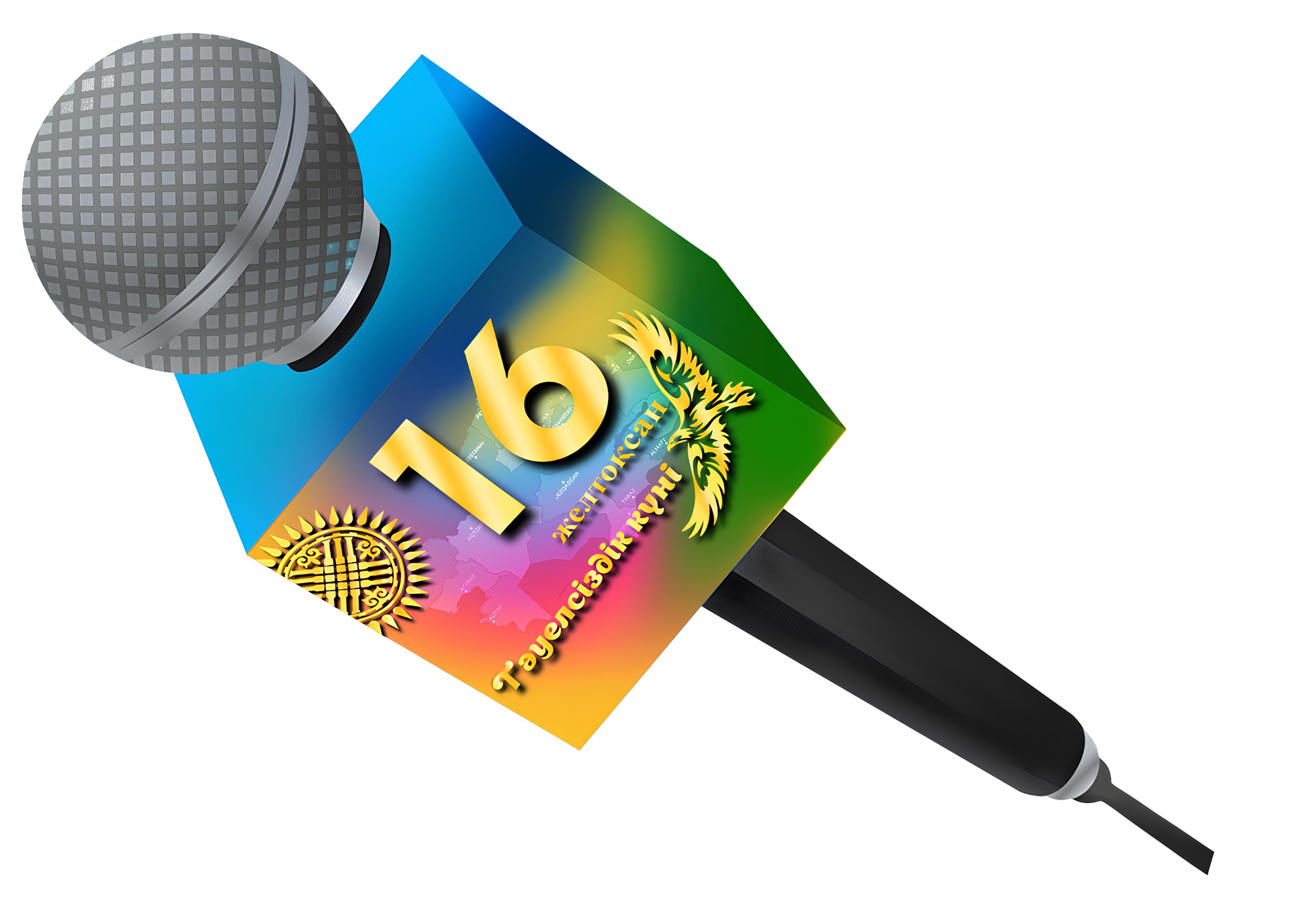 Бұл материал 16 желтоқсан – Қазақстан Республикасының Тәуелсіздік күніне арналған арнайы жасалған студия дизайны мен сахналық безендіру жиынтығы. Композицияда ұлттық реңк, мемлекеттік рәміздер, Қазақстан картасы, алтын қыран және тәуелсіздік символикасы үйлесімді көрініс тапқан.