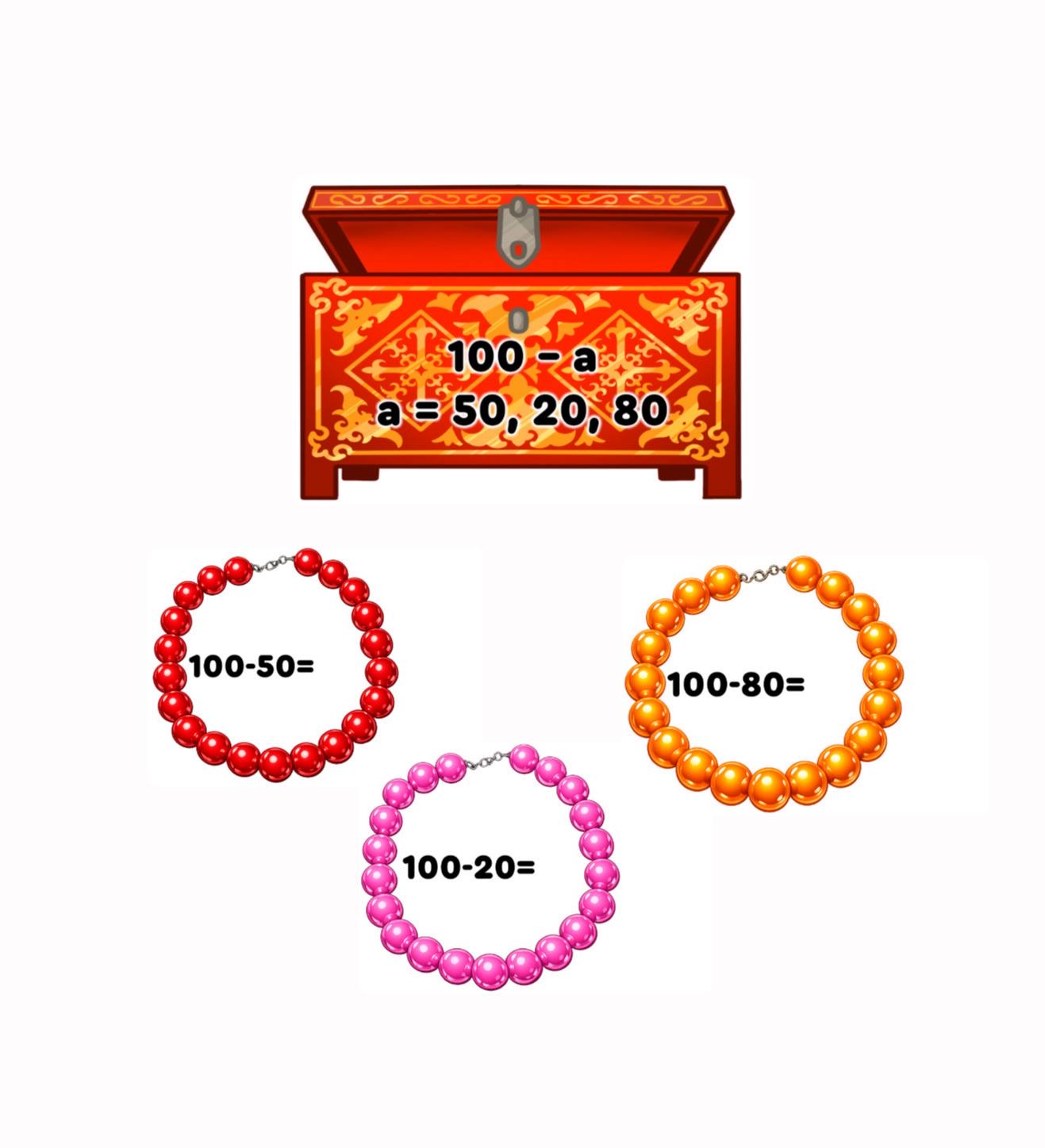 – 100 санынан азайтуға арналған көрнекі есептер (100–80, 100–20, 100–50)