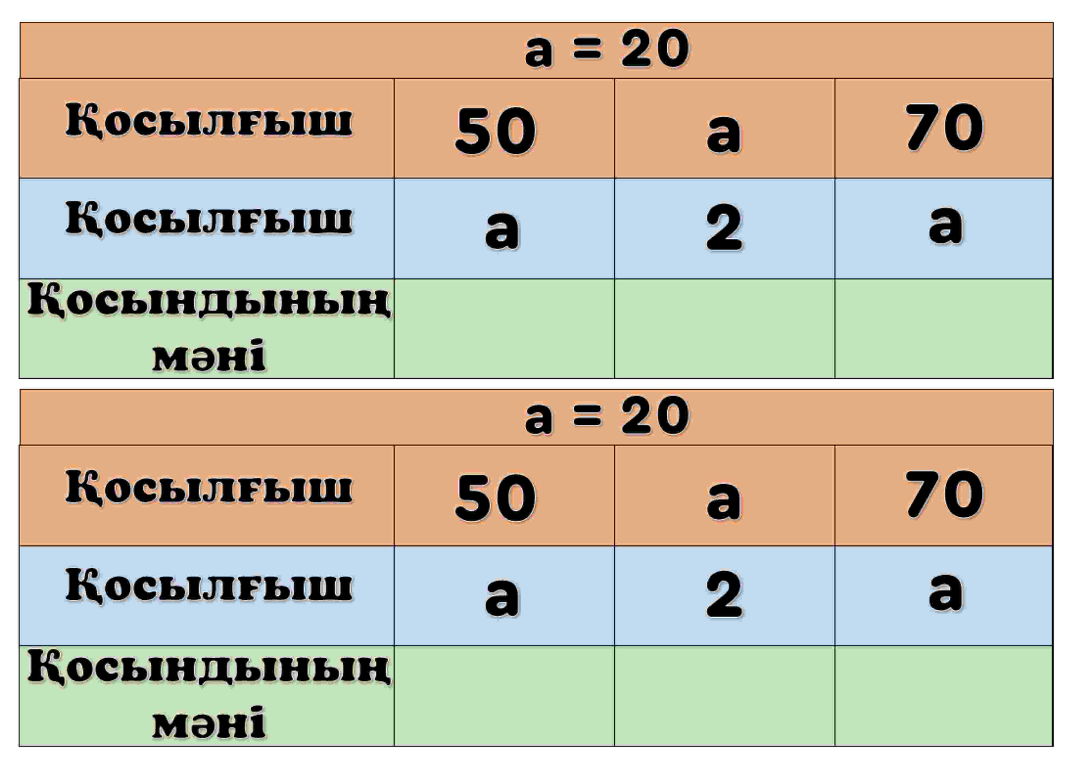 – Айнымалысы бар қосу тапсырмалары (a = 20 мәнімен есептеу)
