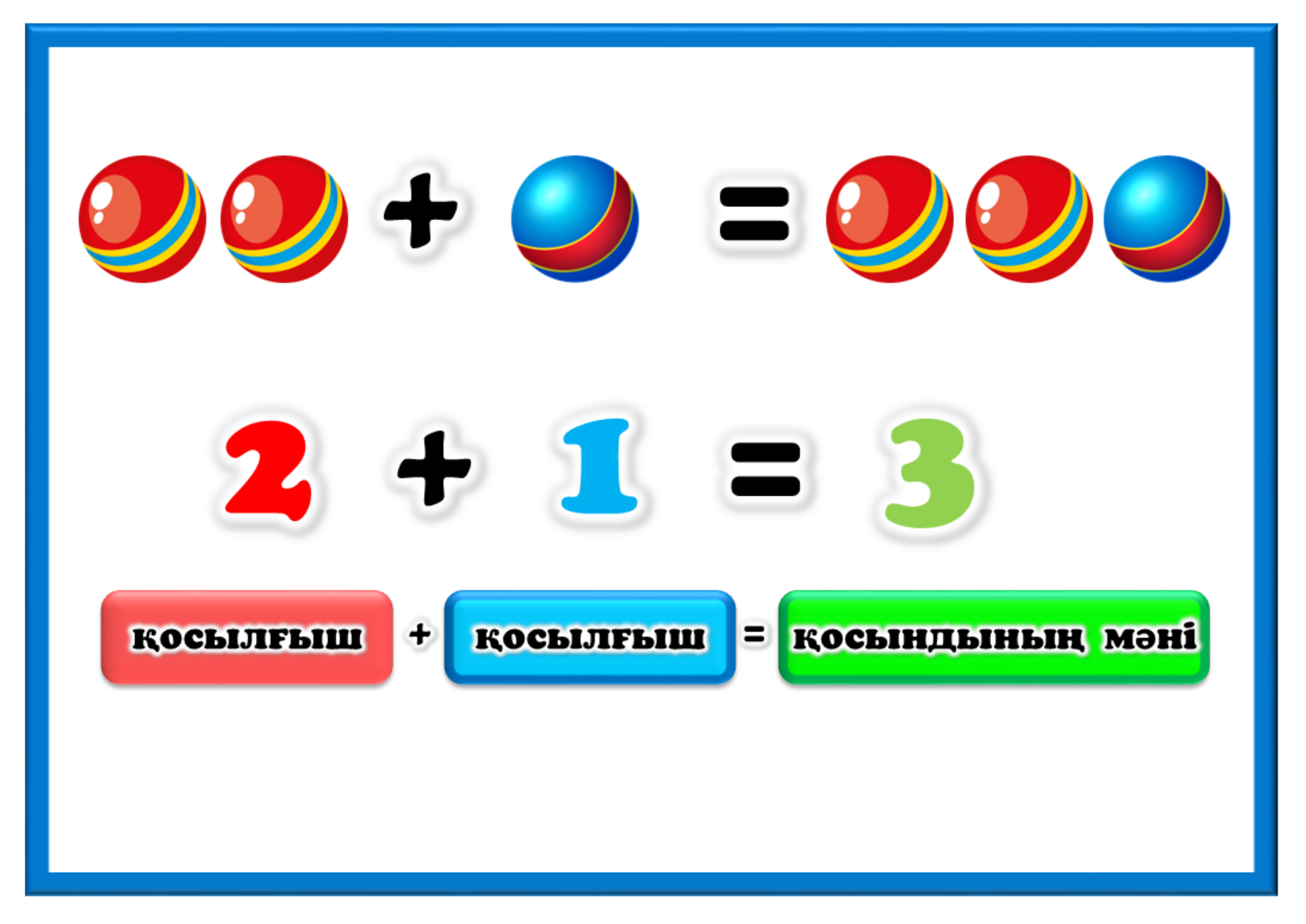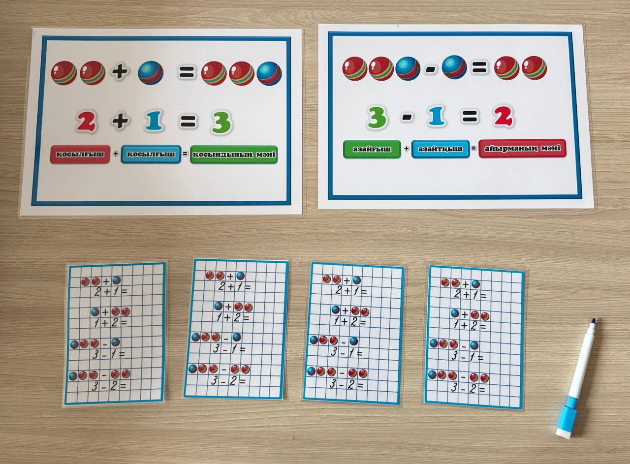 Бұл оқу материалы 1 сынып оқушыларына арналған математика пәні бойынша “қосу және азайту” тақырыбын меңгертуге бағытталған. Жинақта есептер көрнекі суреттер, ойыншықтар, шарлар және сандық модельдер арқылы түсіндірілген, бұл бастауыш сынып оқушыларының логикалық ойлауын және сан ұғымын тез қалыптастыруға көмектеседі.