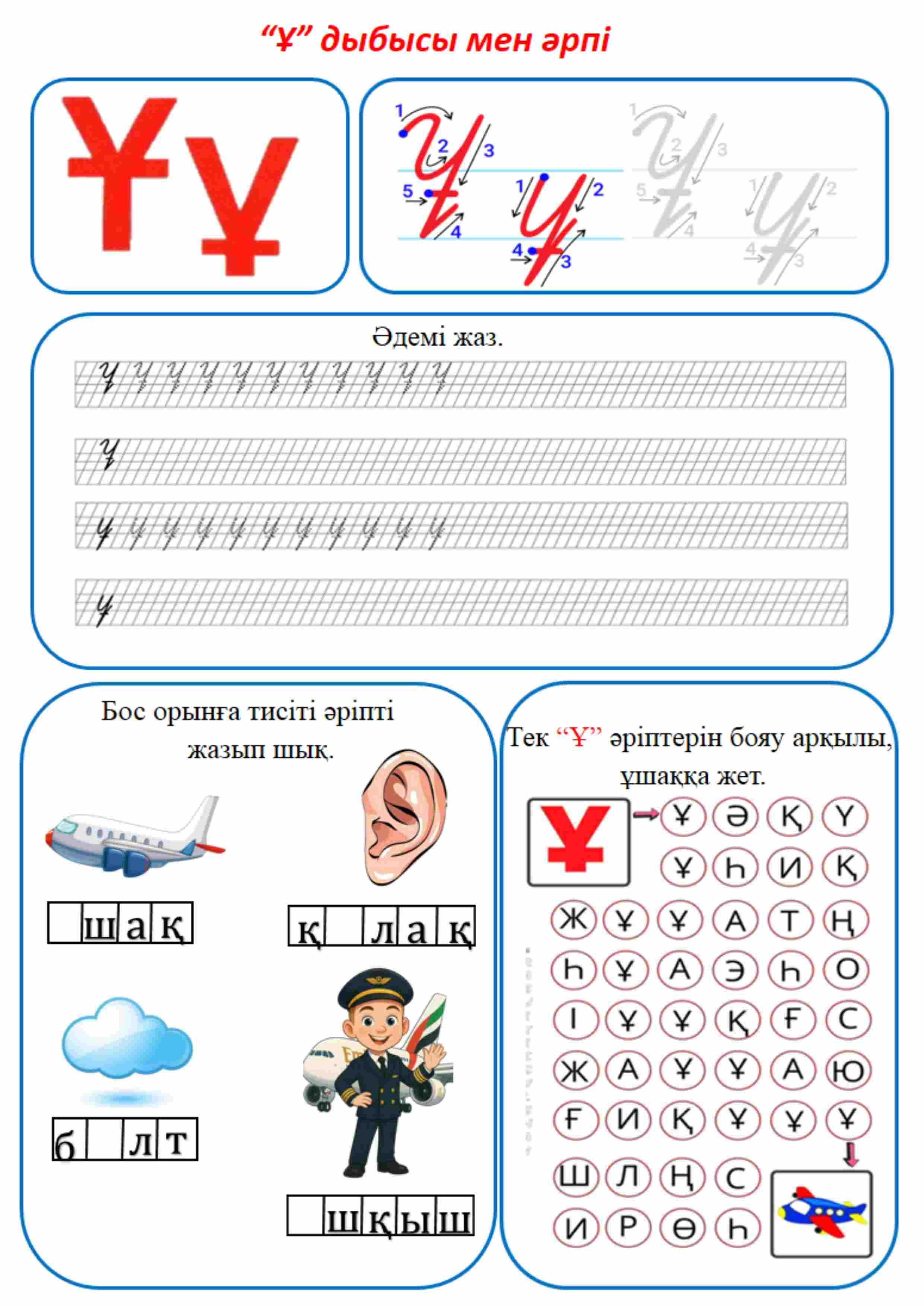 Тек «Ұ» әрпін бояп, ұшаққа жету ойыны;