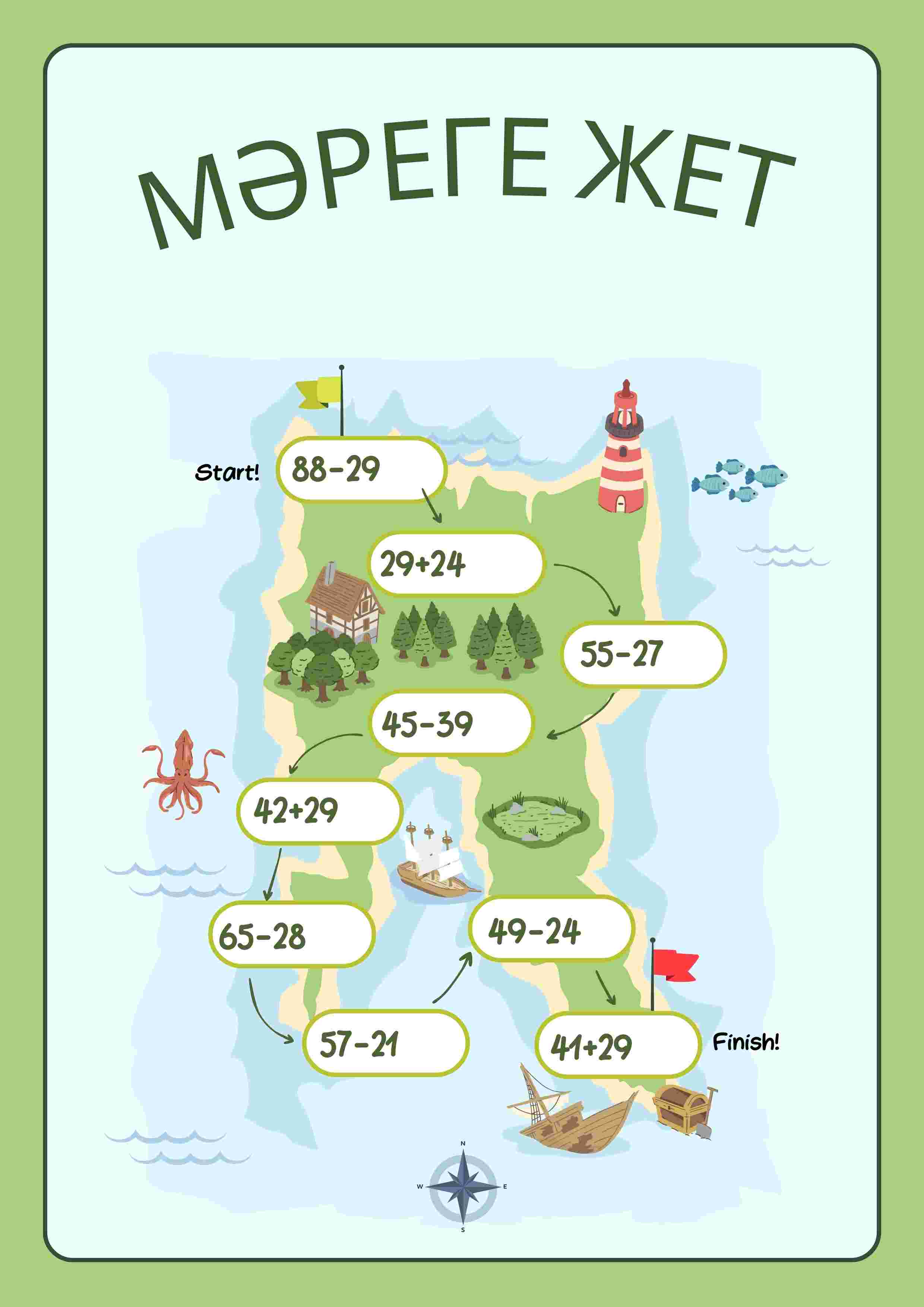 2 сыныпқа арналған математика тапсырмалар жинағы – оқушылардың есептеу дағдыларын, логикалық ойлауын және математикалық сауаттылығын дамытуға бағытталған толық дидактикалық материал. Жинақта қосу, азайту, көбейту, салыстыру, өлшем бірліктері, теңдеулер және геометриялық фигуралар бойынша әртүрлі деңгейдегі тапсырмалар берілген. Материал көрнекі суреттермен, ойын элементтерімен және практикалық жұмыстармен толықтырылған.