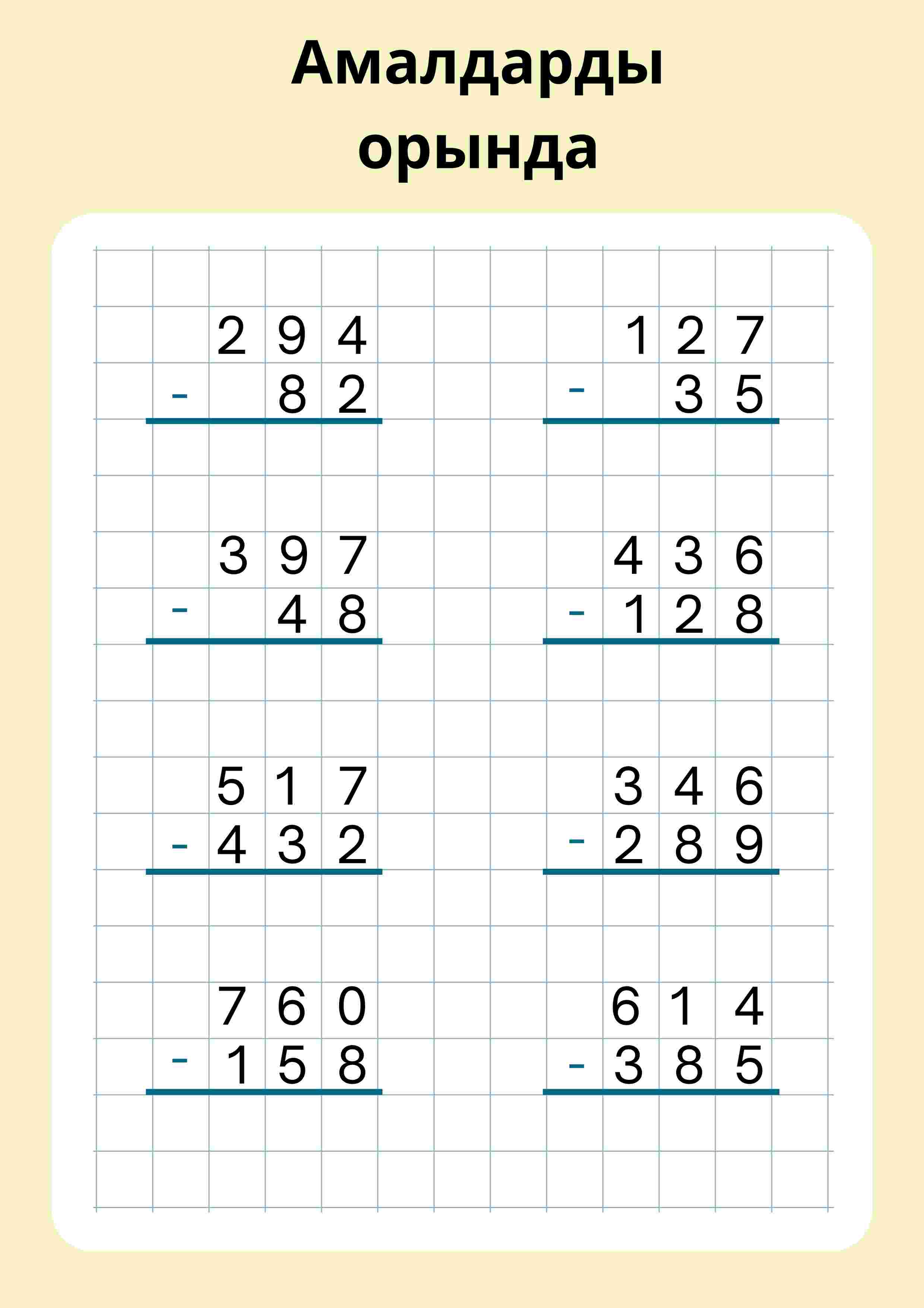 – Қосу, азайту аралас есептер