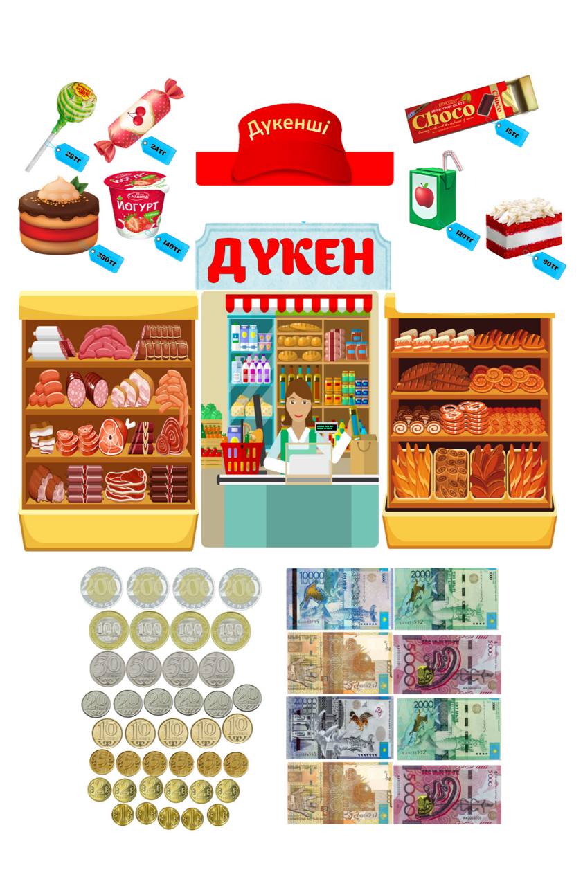 Бұл материал 3-сынып оқушыларына арналған «Математика – 24 сабақ» тақырыбы бойынша дайындалған көрнекі және практикалық тапсырмалар жинағы. Сабақ мазмұны оқушылардың күнделікті өмірде жиі кездесетін «ақша», «баға», «сатып алу», «дүкен» ұғымдарын түсінуіне бағытталған.