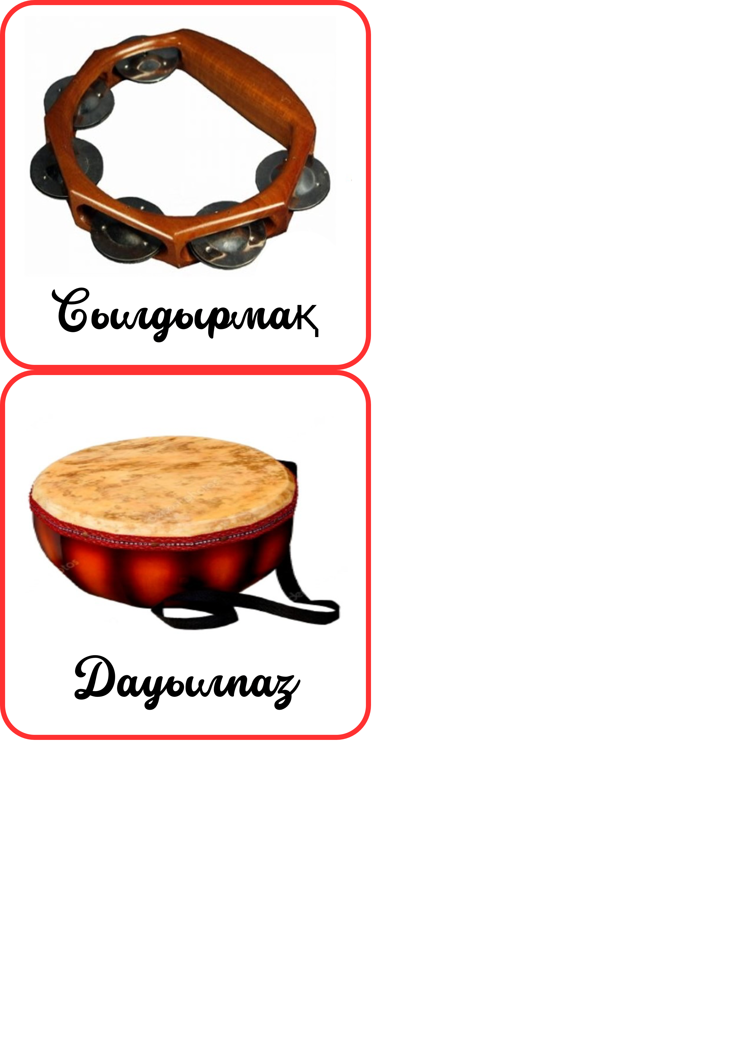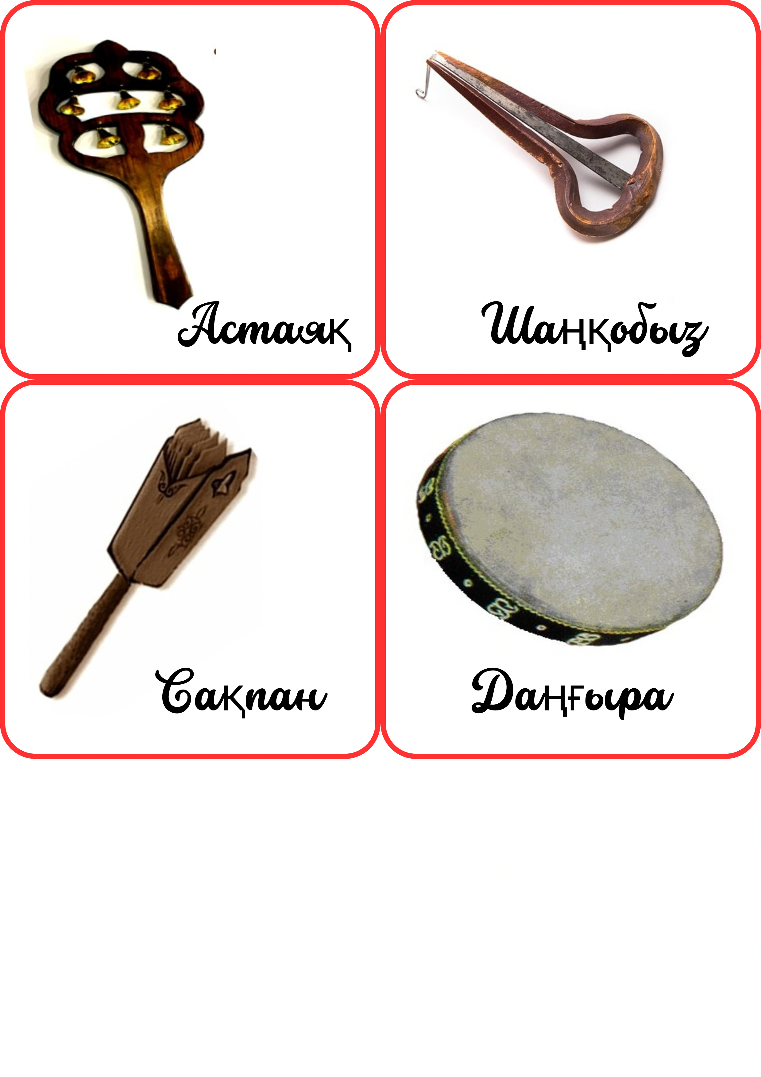 • Ұрмалы-сілкімелі аспаптар: дабыл, даңғыра, сылдырмақ, сақпан, астаяқ;