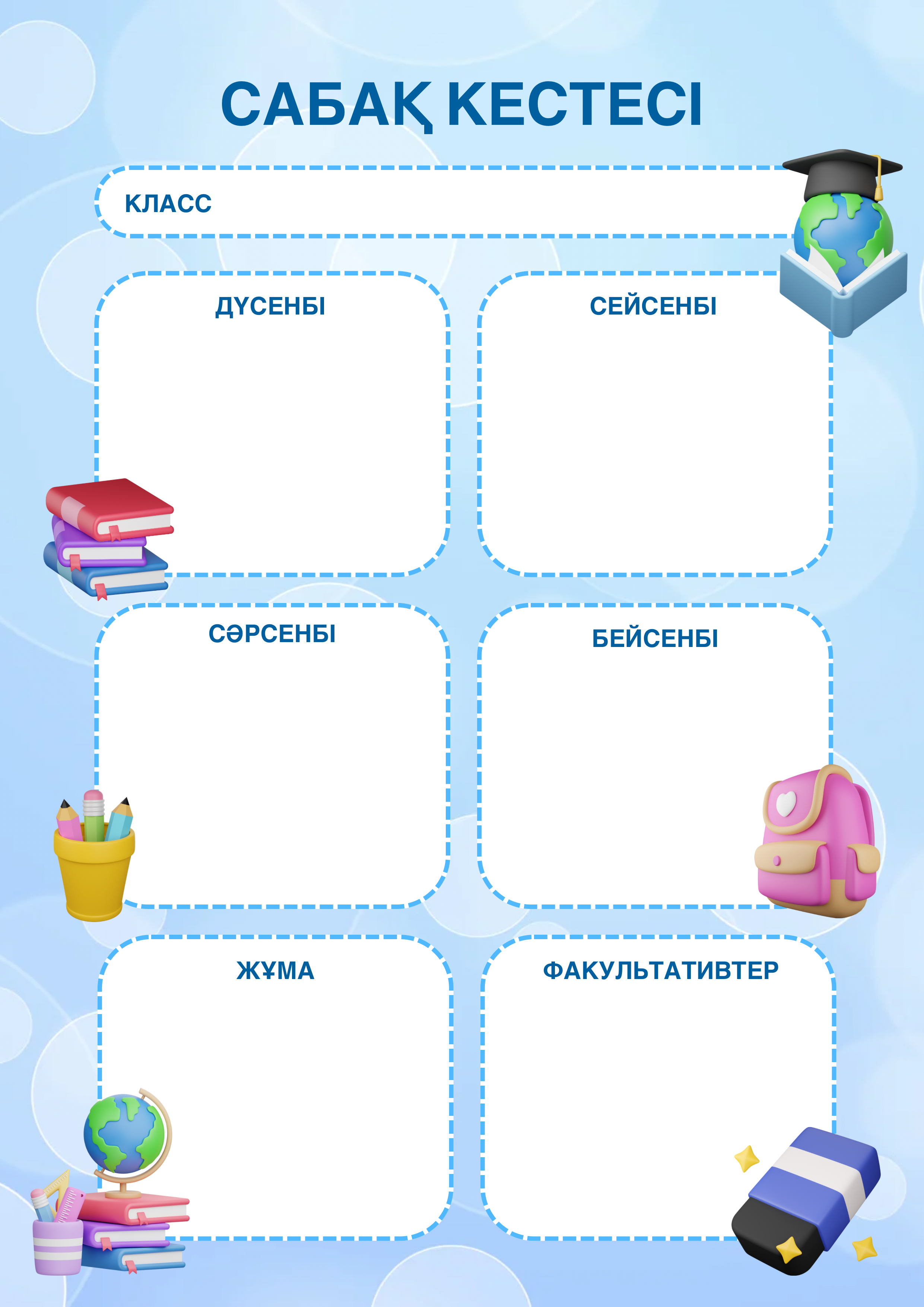 Күнделікті сабақ кестесін әдемі әрі ыңғайлы етіп көрсетуге көмектеседі.