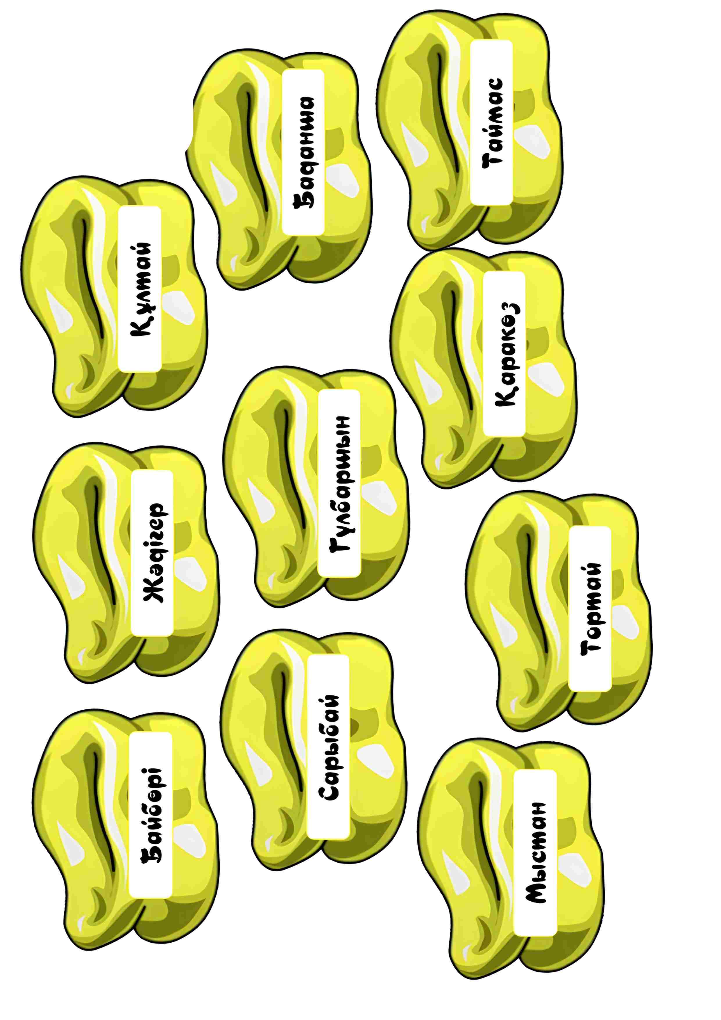 Бұл көрнекілік оқушылардың қызығушылығын арттырып, есте сақтау қабілетін дамытуға, салыстыру, топтастыру және танымдық дағдыларын жетілдіруге көмектеседі. Сабақ барысында кейіпкерлерді сәйкестендіру, жыр бойынша тапсырмалар орындау, топтық ойын ұйымдастыру, постер жасау немесе әңгімелеу әдістерімен қолдануға өте қолайлы.