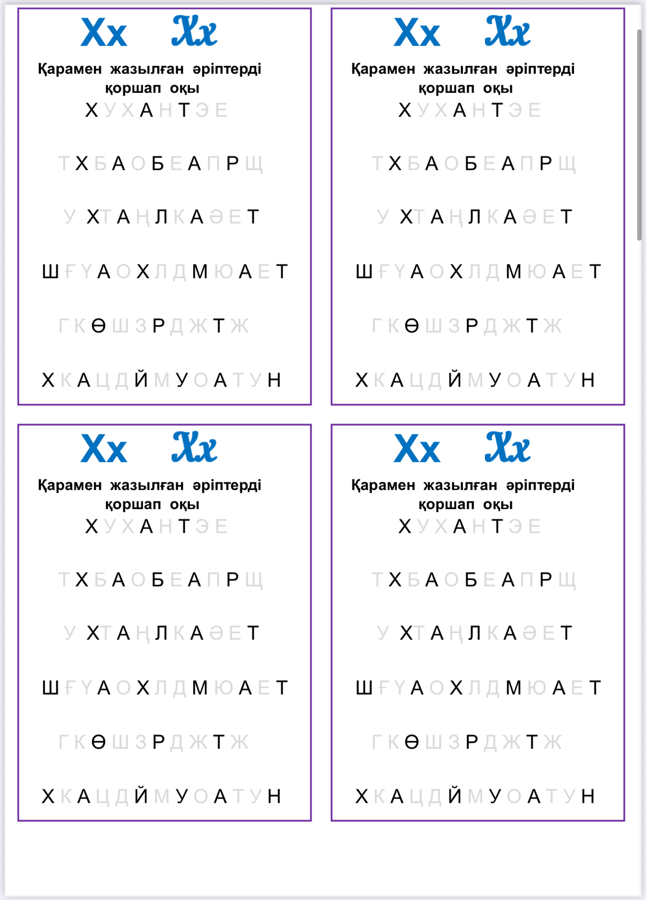 • Әріптер арасынан Х х әрпін тауып, қоршап оқу
