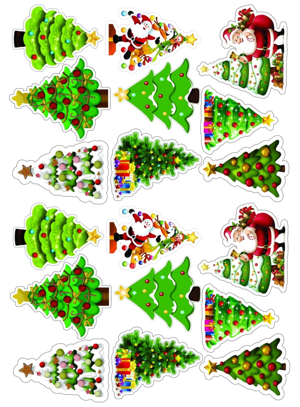 Жаңа жылдық стикерлер мен безендіру шаблондары — шырша, Аяз ата, сыйлық белгілері
