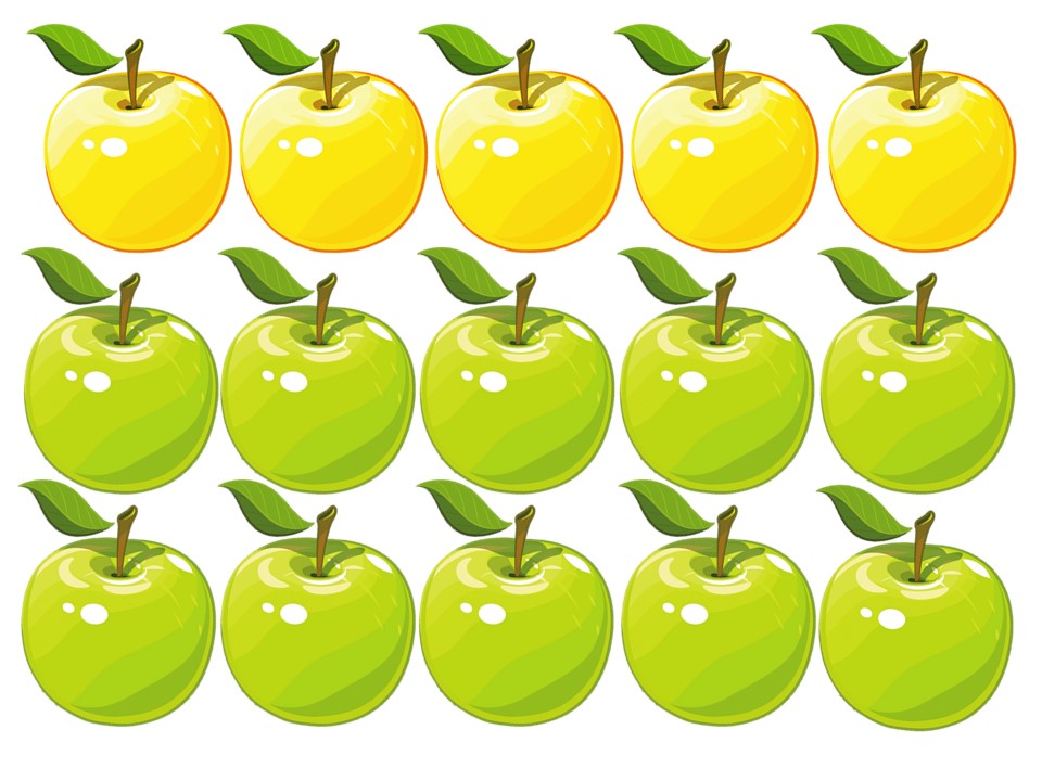 Түрлі түсті алмалар (қызыл, сары, жасыл)