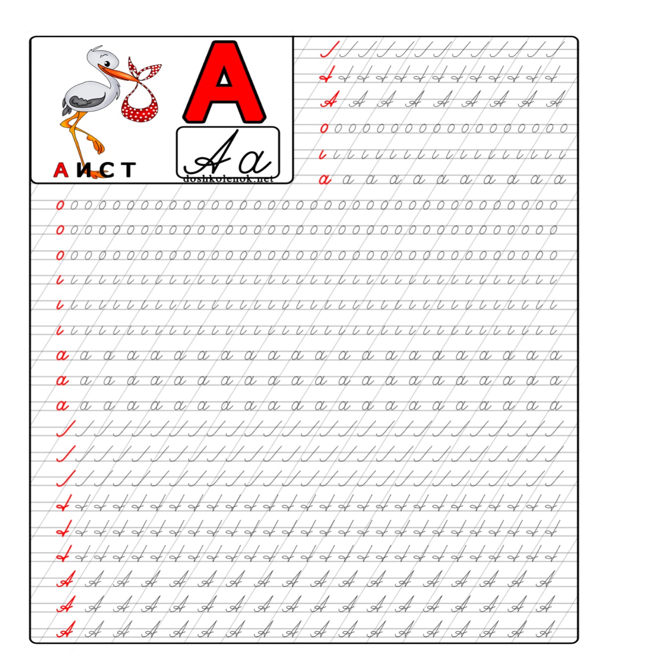 Мақсаты — әріптің жазылу бағытын, көлбеу сызықты ұстануды және әріп байланысын үйрету
