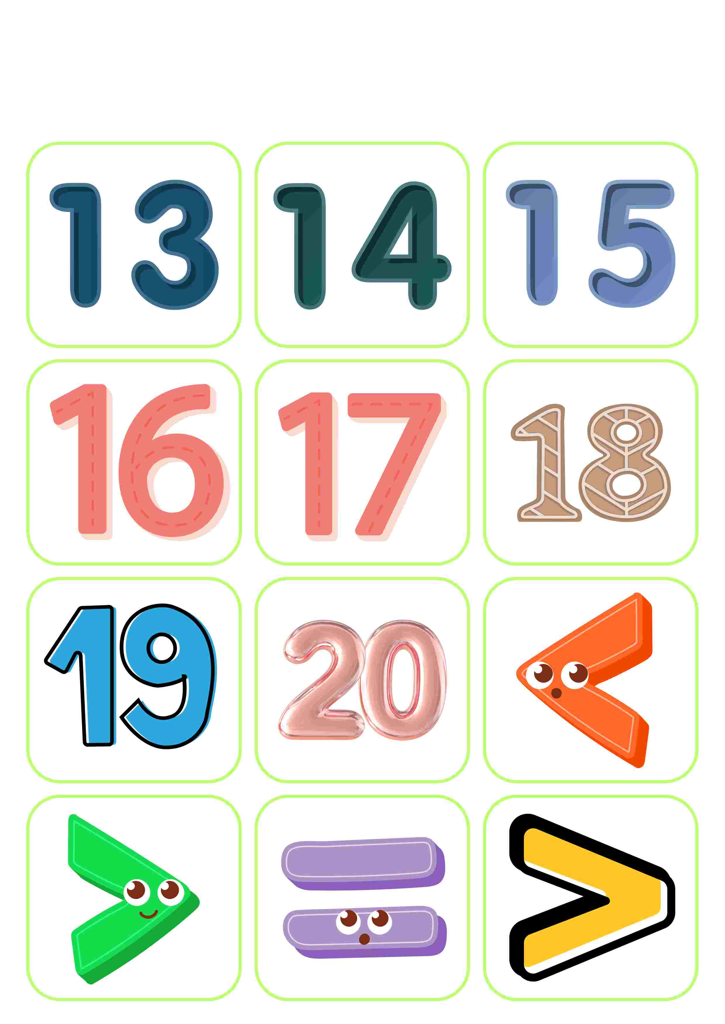 • 1–20 аралығындағы сандар карточкалары;