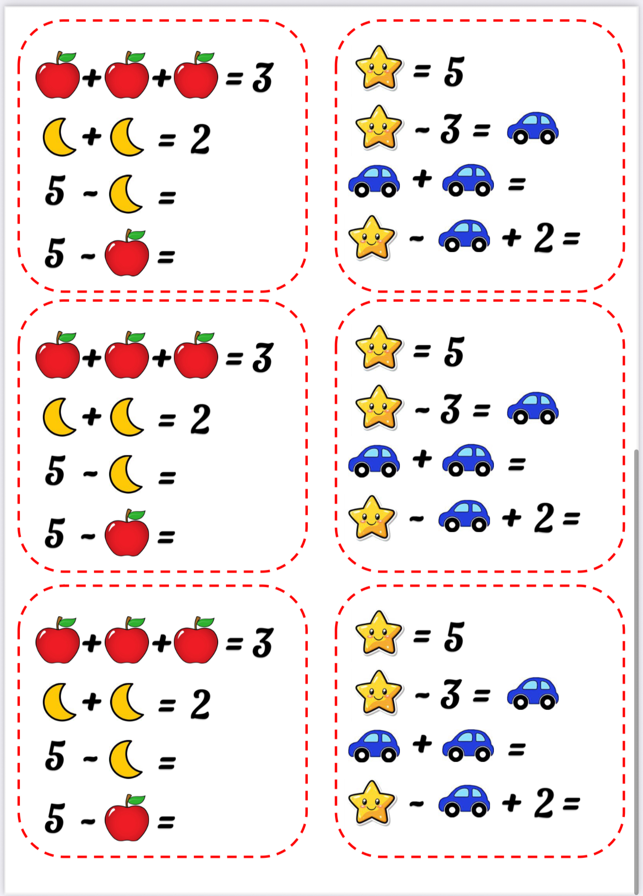 • Жемістер, көліктер, жұлдызшалар арқылы берілген есептер