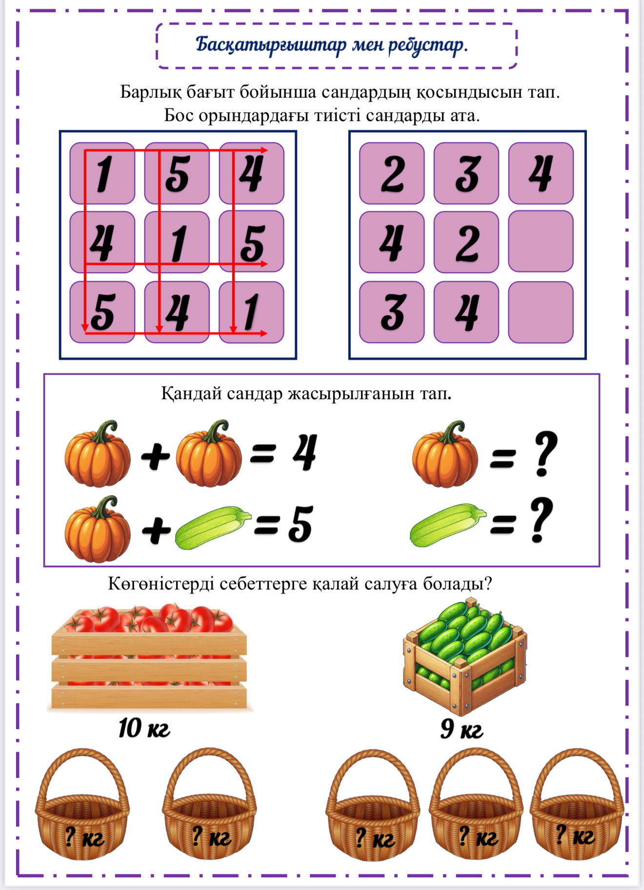 Көрнекіліктер ● Логикалық есептер мен ребустар жинағы – бастауыш сыныпқа арналған қызықты математика тапсырмалары 53 сабақ математика 1 сынып
