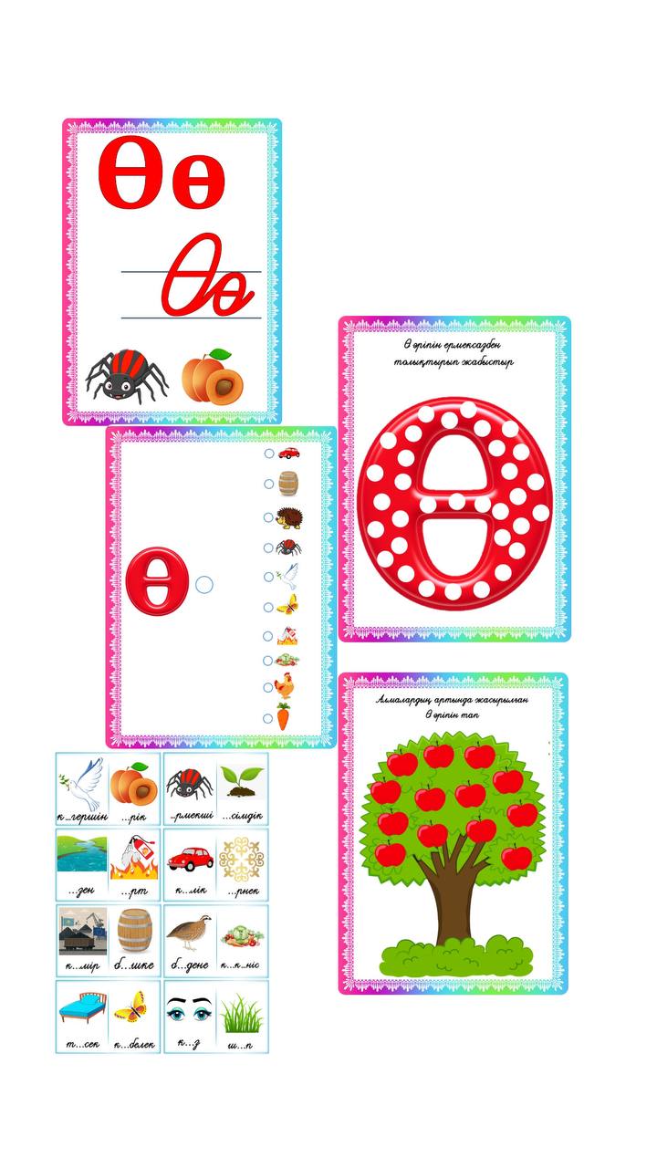 Бұл жинақ 1-сынып оқушыларына арналған «Ө» әрпі мен дыбысын меңгертуге бағытталған көрнекі әрі қызықты тапсырмалардан тұрады. Материалдар баланың әріпті тануын, дыбысты дұрыс айтуын, буындап оқуын және жазу дағдысын дамытуға көмектеседі.