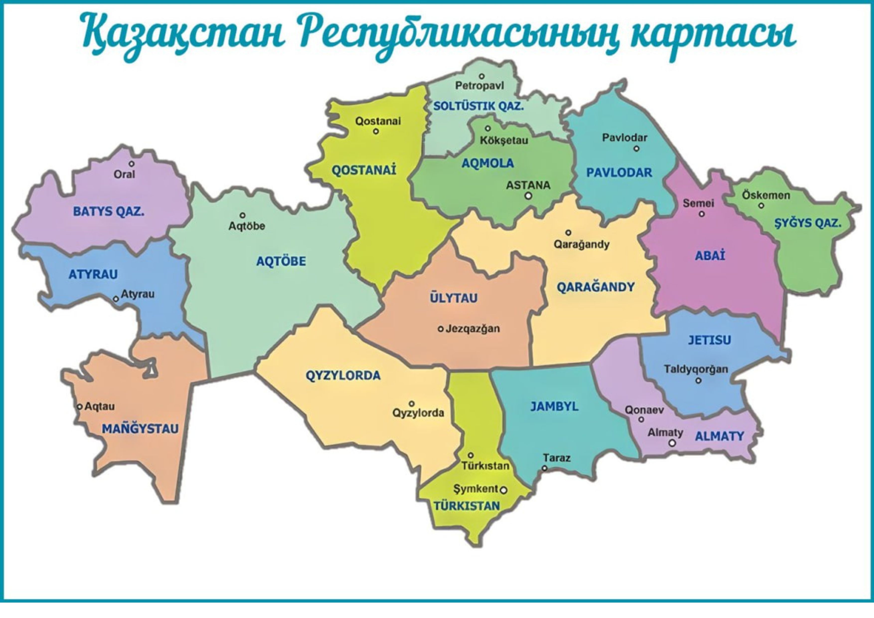 Қазақстан облыстары картасы – бастауыш сыныпқа арналған көрнекілік | Қазақстан өңірлері мен эмблемалары