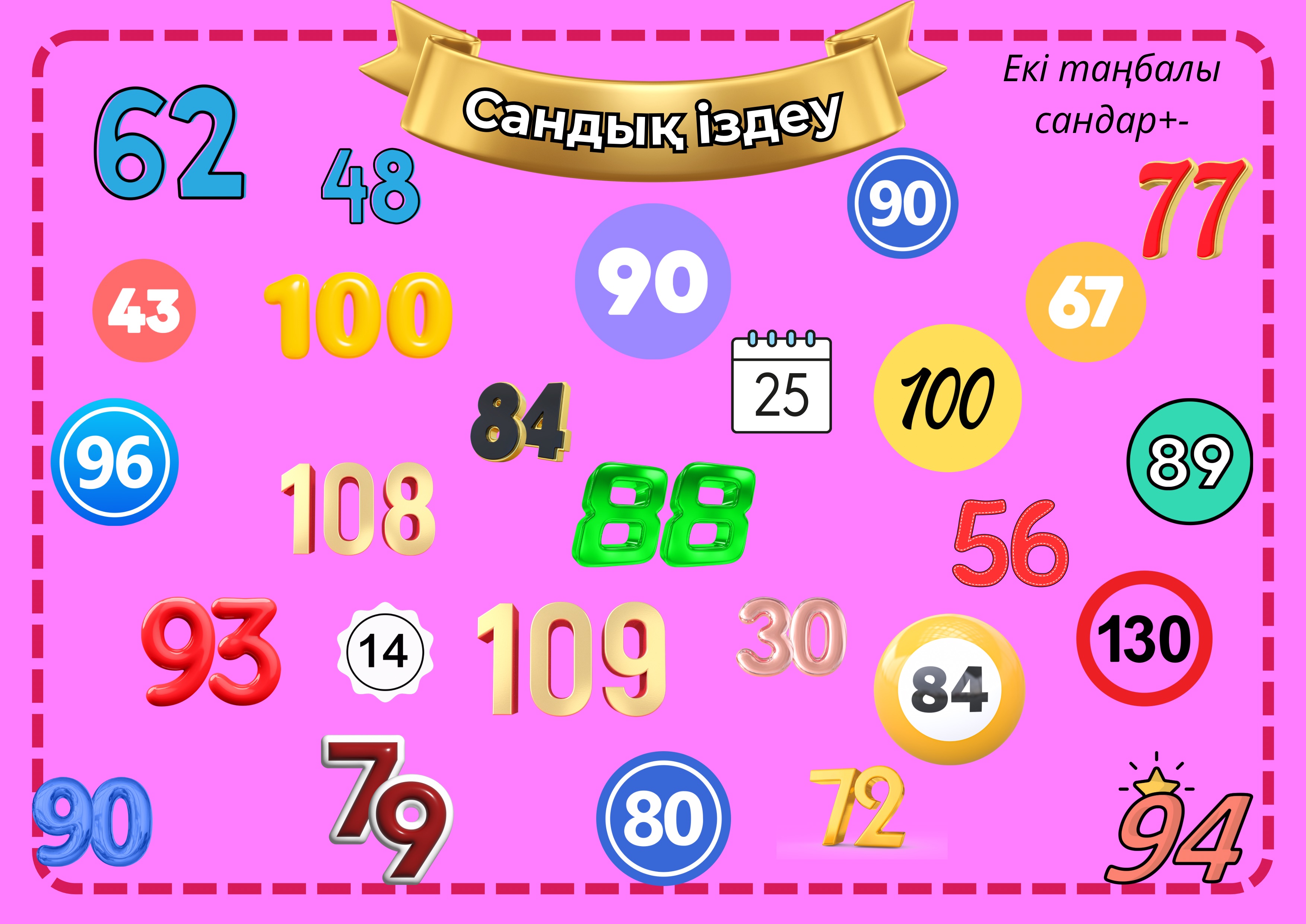 Көрнекіліктер ● Сандық іздеу: қосу және алу – екі таңбалы сандармен жұмысқа арналған дидактикалық ойын (2 сынып)