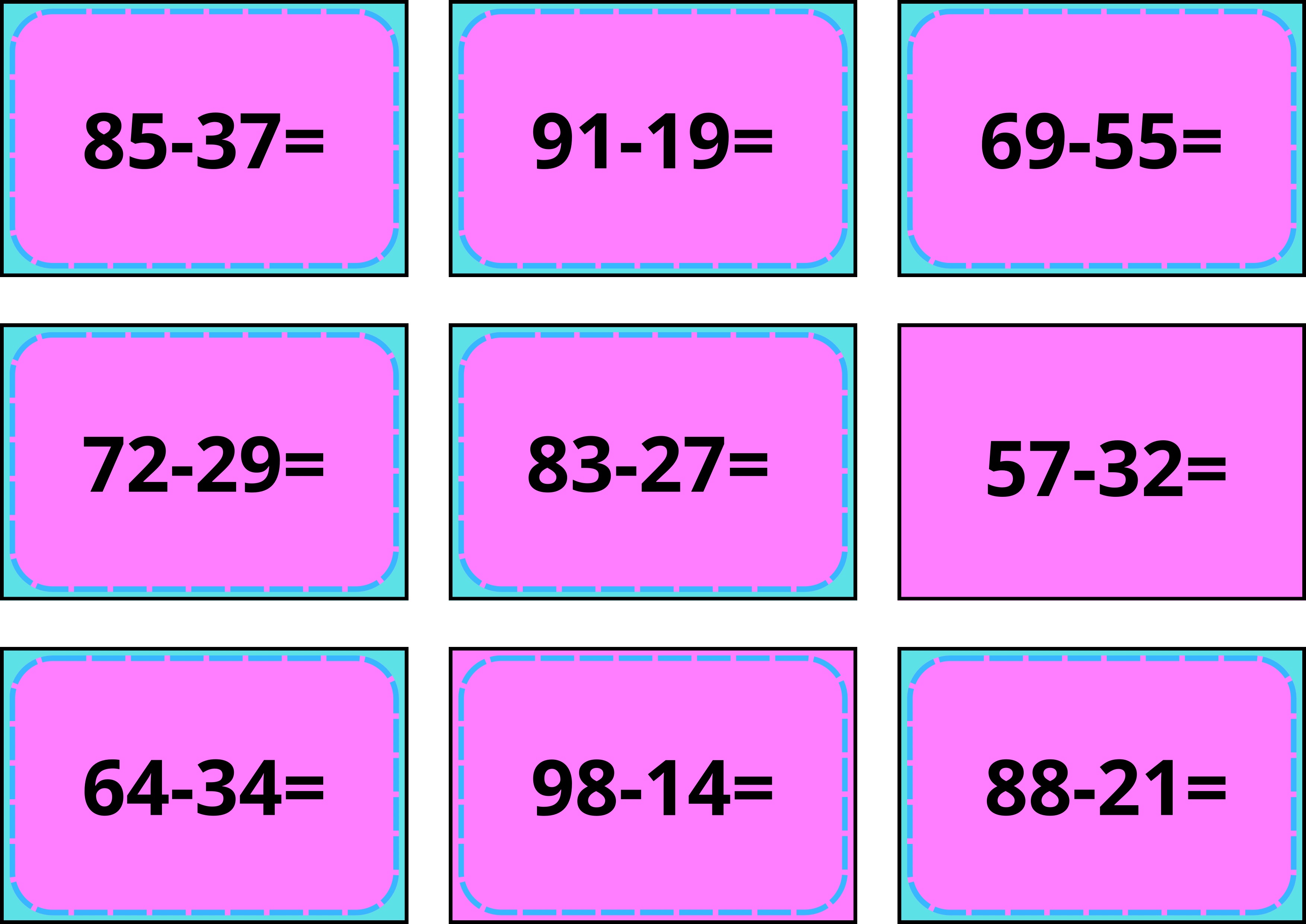 ➖ 85 – 37 =, 72 – 29 =, 91 – 19 =, 69 – 55 = және т.б.;