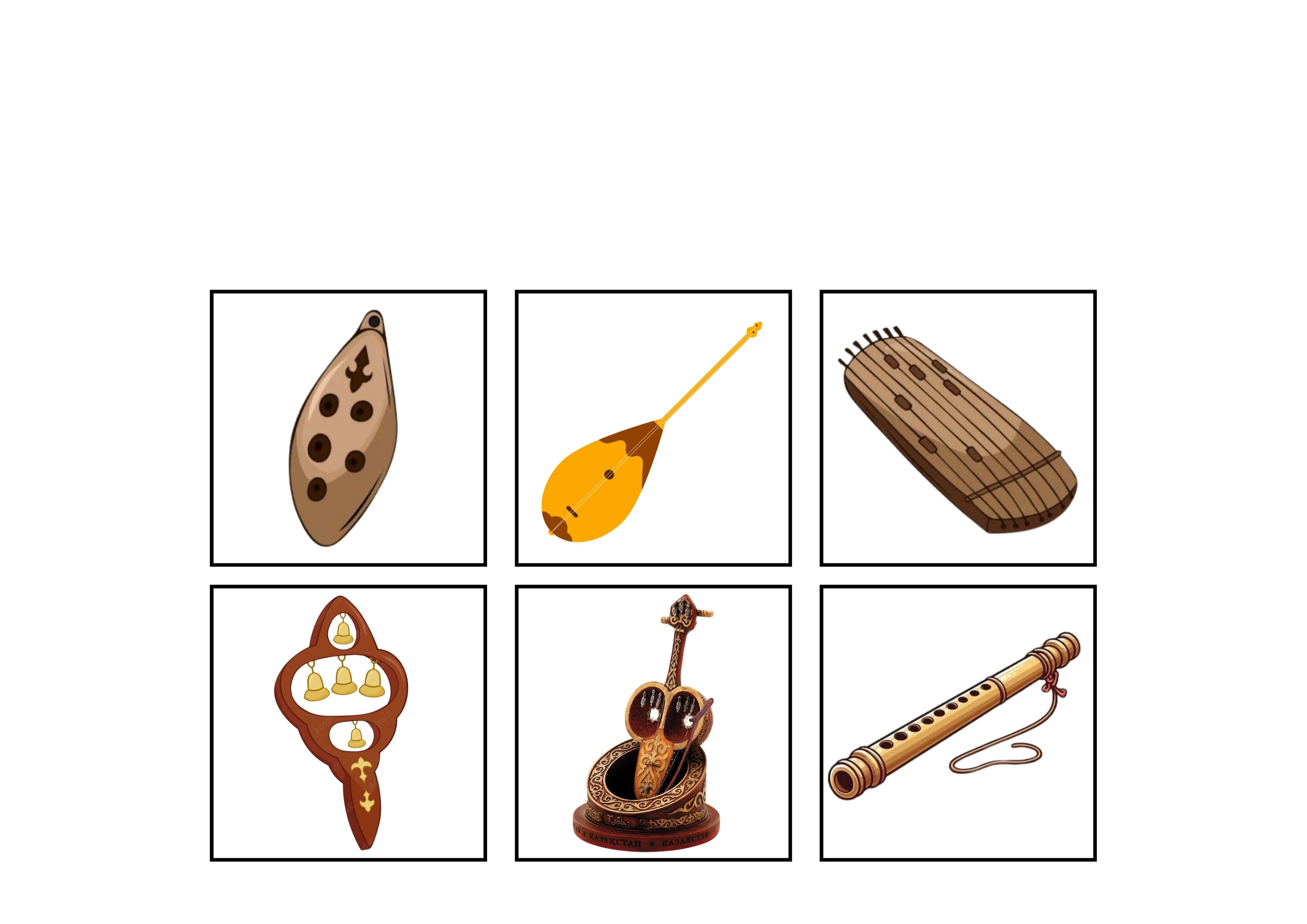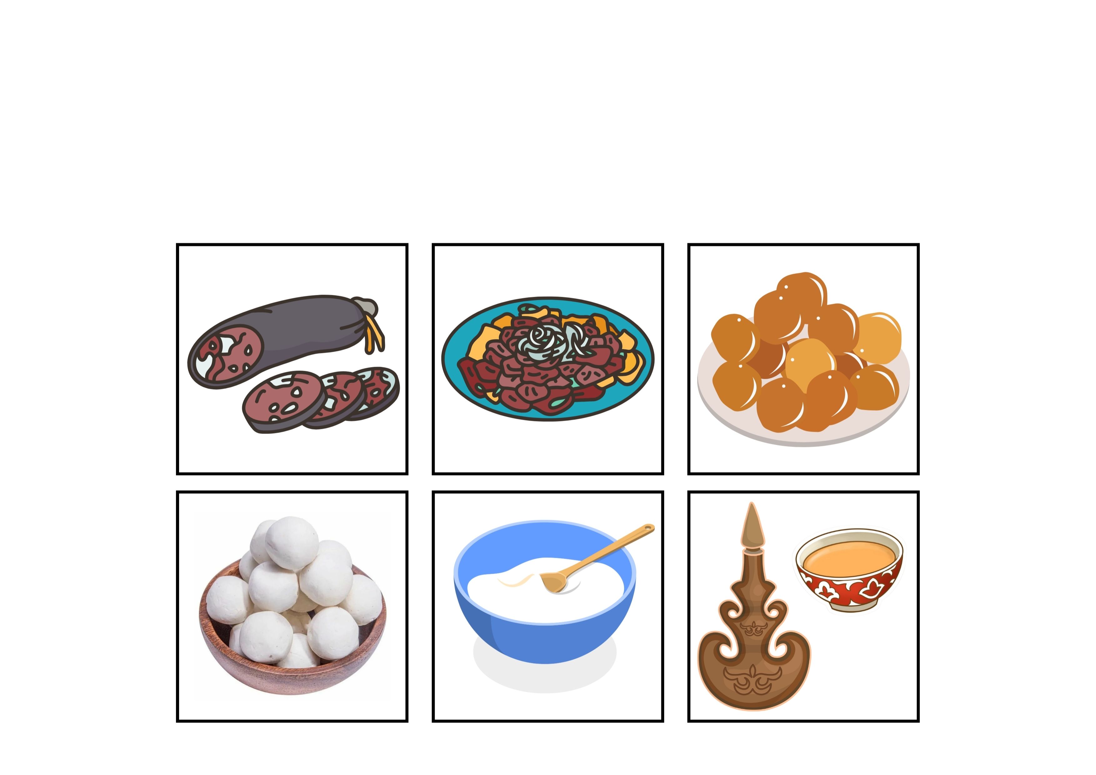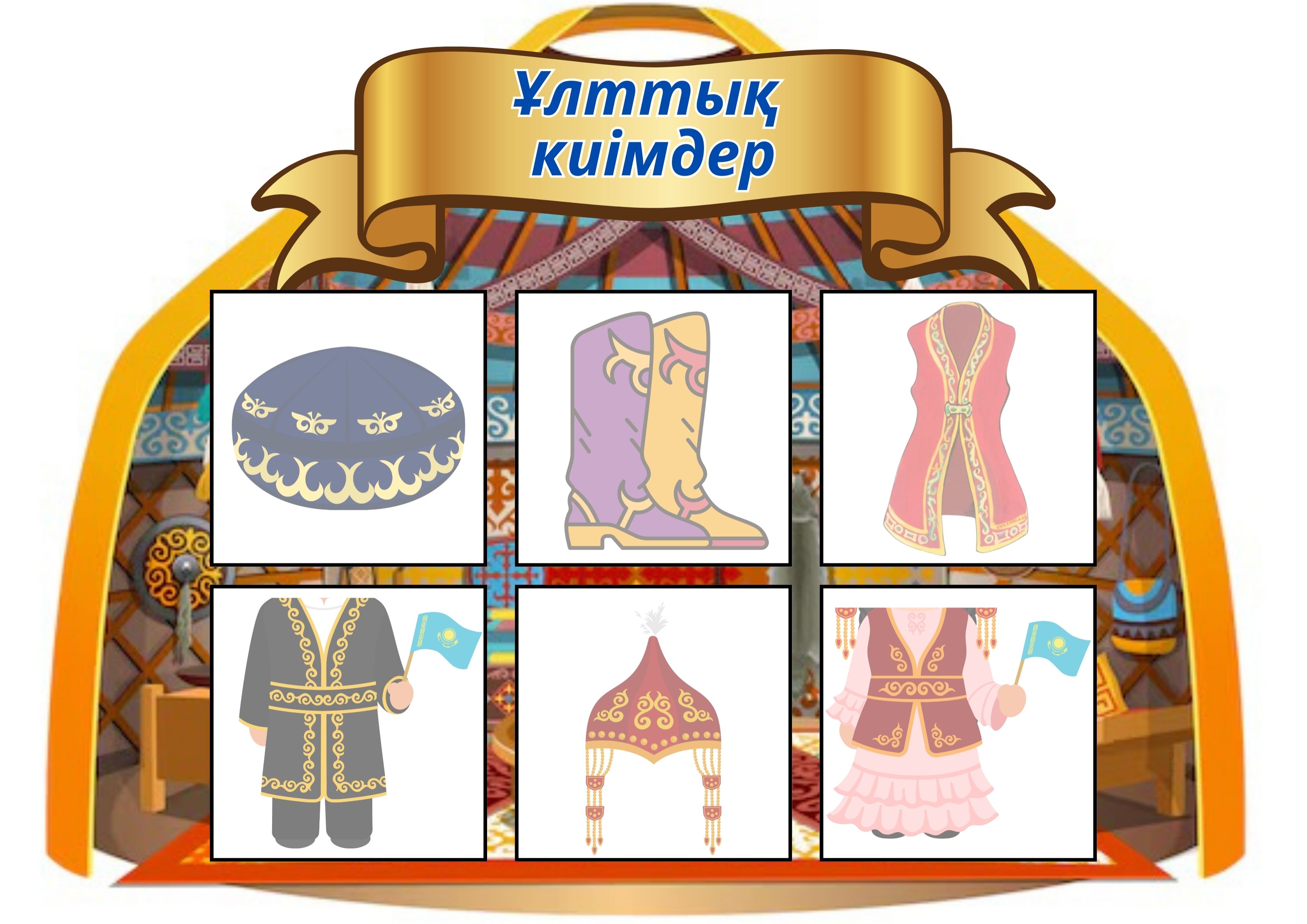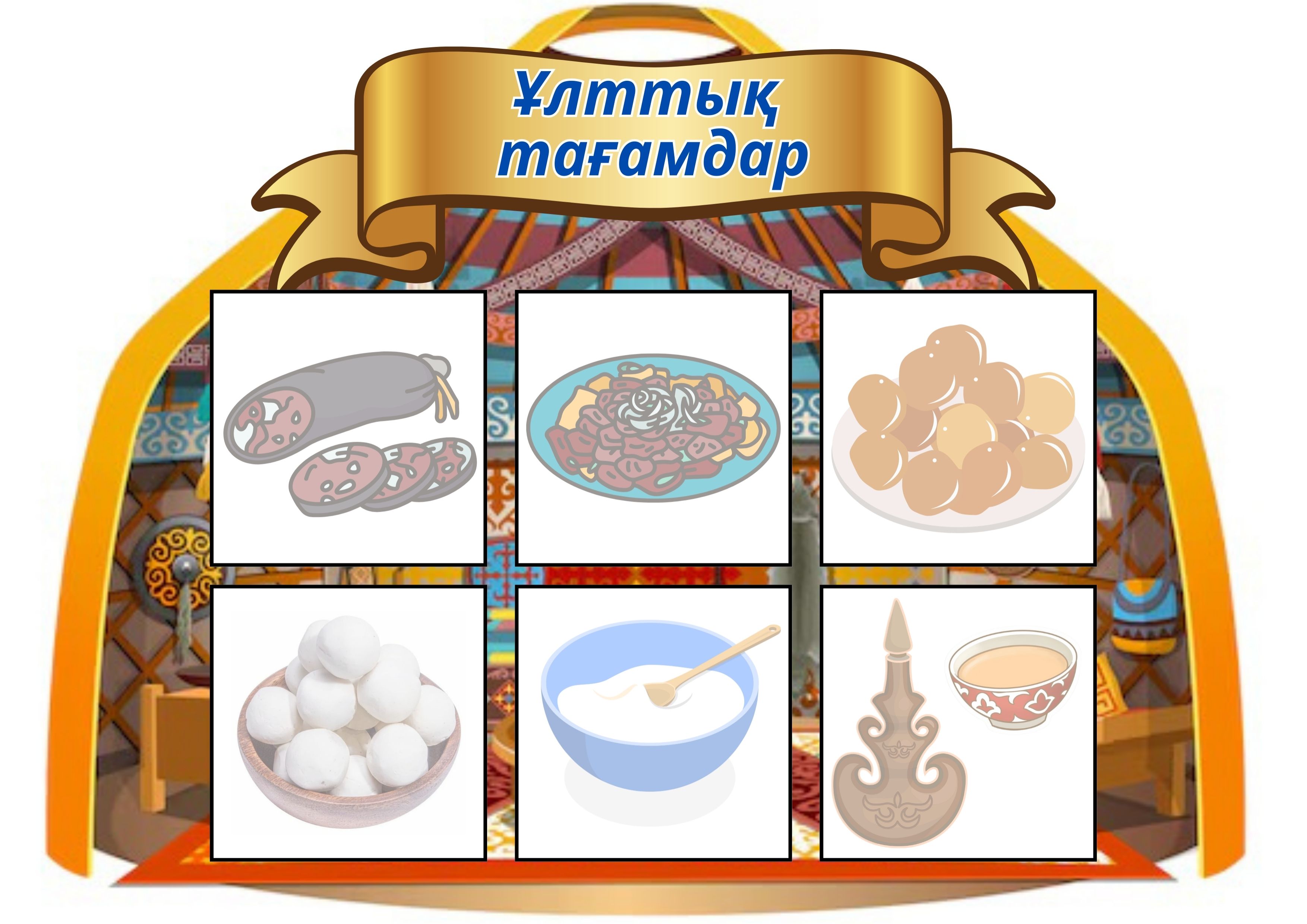 Көрнекіліктер ● Ұлттық құндылықтар , ұлттық ойындар , ұлттық киімдер , ұлттық тағамдар , ұлттық аспаптар