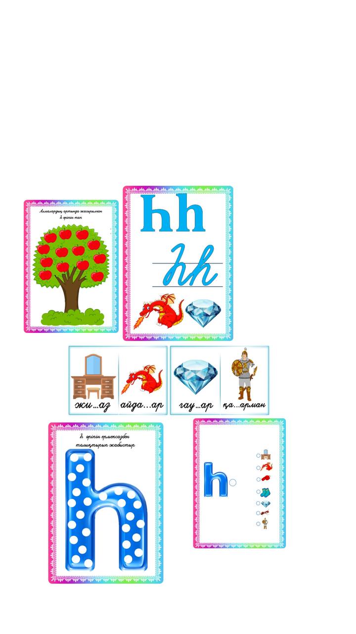 Көрнекіліктер ● Һ әрпіне арналған көрнекіліктер жинағы – сауат ашуға арналған ойын және жазу тапсырмалары